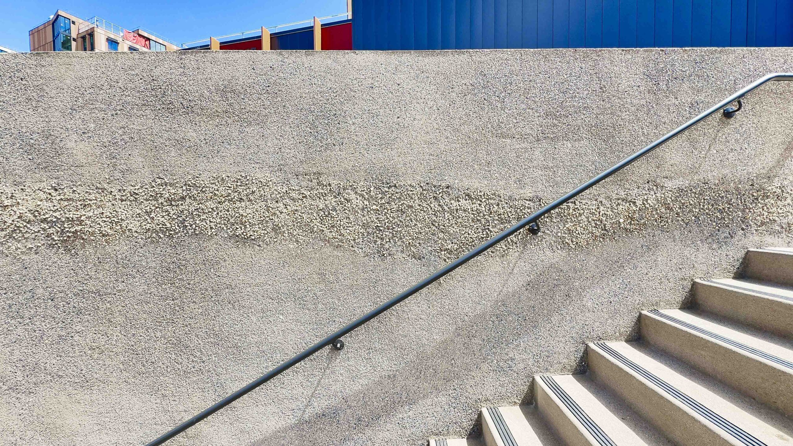 To address this, Boulderscape proposed an alternative: utilizing shotcrete to construct the walls, followed by the application of a specialized exposed sand finish that would align with the aesthetic criteria set by UCSD architects.Additionally, Boulderscape developed a new finish named the "River Wash" finish, designed to mimic the stratification found within riverbed walls.